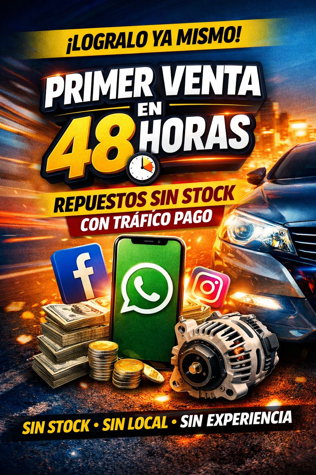 Es un sistema paso a paso para que puedas vender un repuesto real usando anuncios pagos,